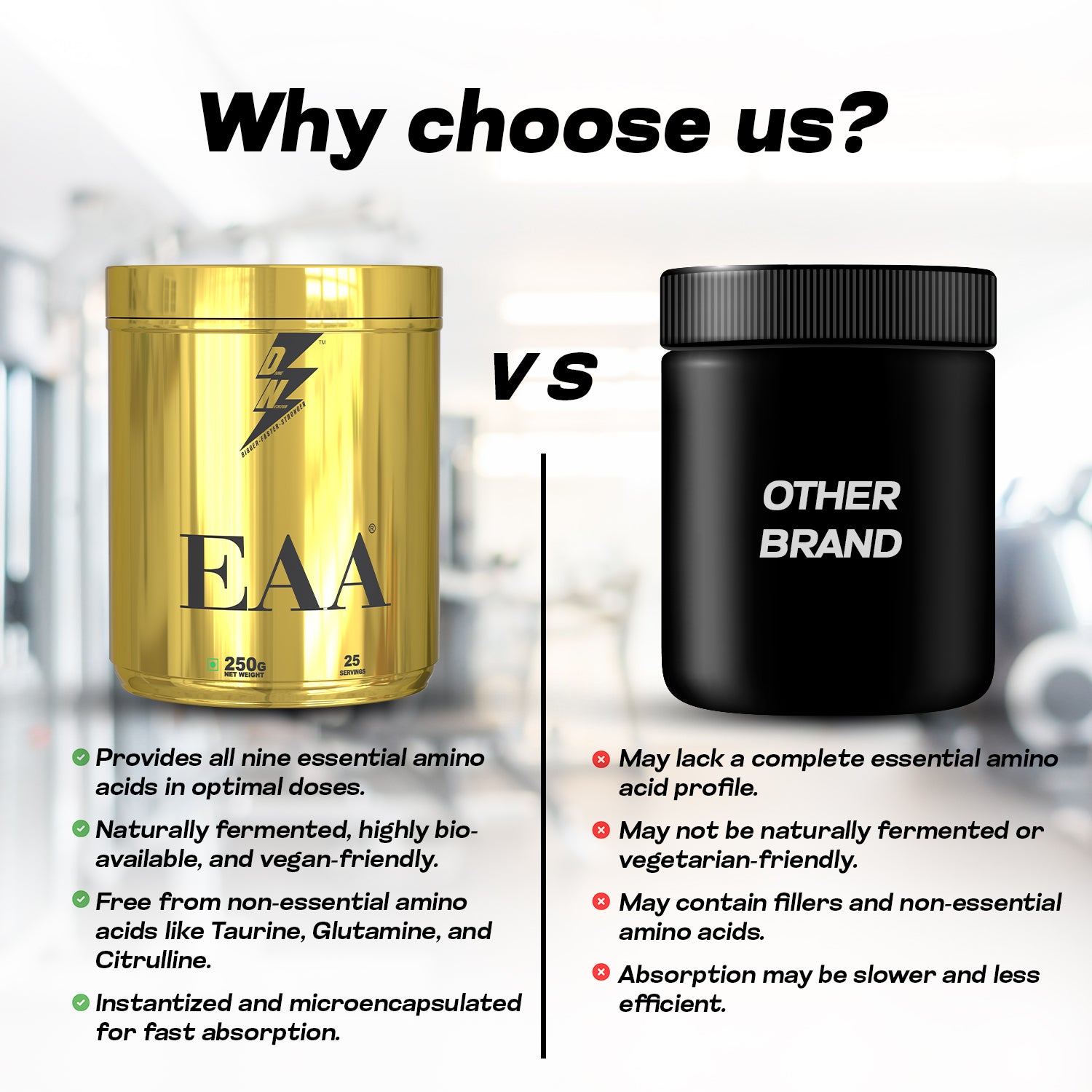 - Divine Nutrition EAA Gold: Contains 9 Essential Amino Acids for muscle building, recovery, and faster absorption.