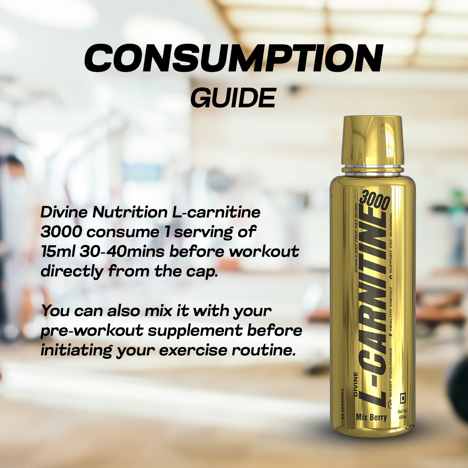 Consume 1 serving 15ml of L-CARNITINE 3000 30-40mins before workout directly from the cap.
